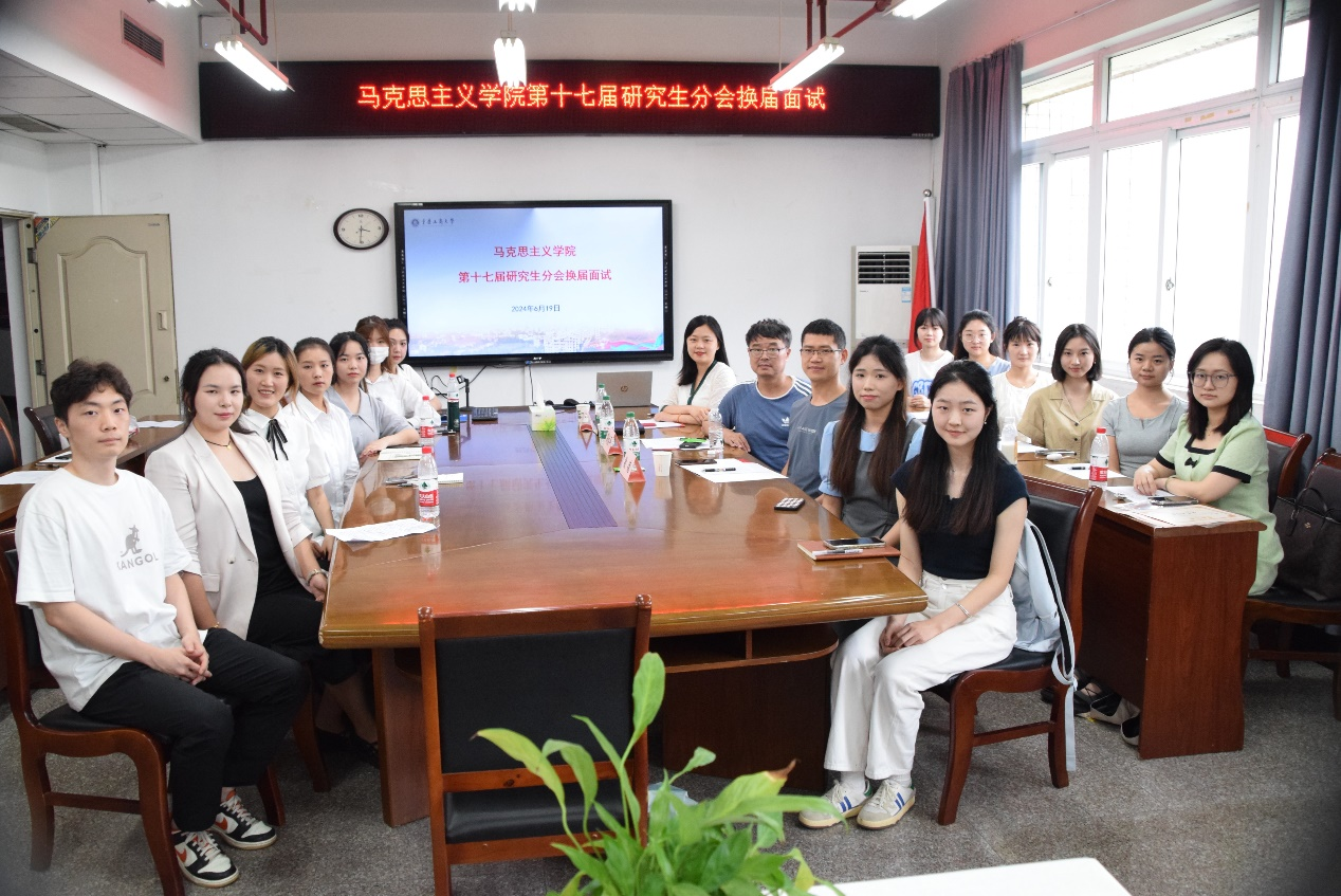 6月20日下午,beat365亚洲版官网第十七届研究生分会换届面试在慧智楼91210会议室举行。学院副院长简福平、学工办主任周琴、辅导员敬德以及部分研究生参加了此次会议,会议由研分会组织部成员宋博茜主持。