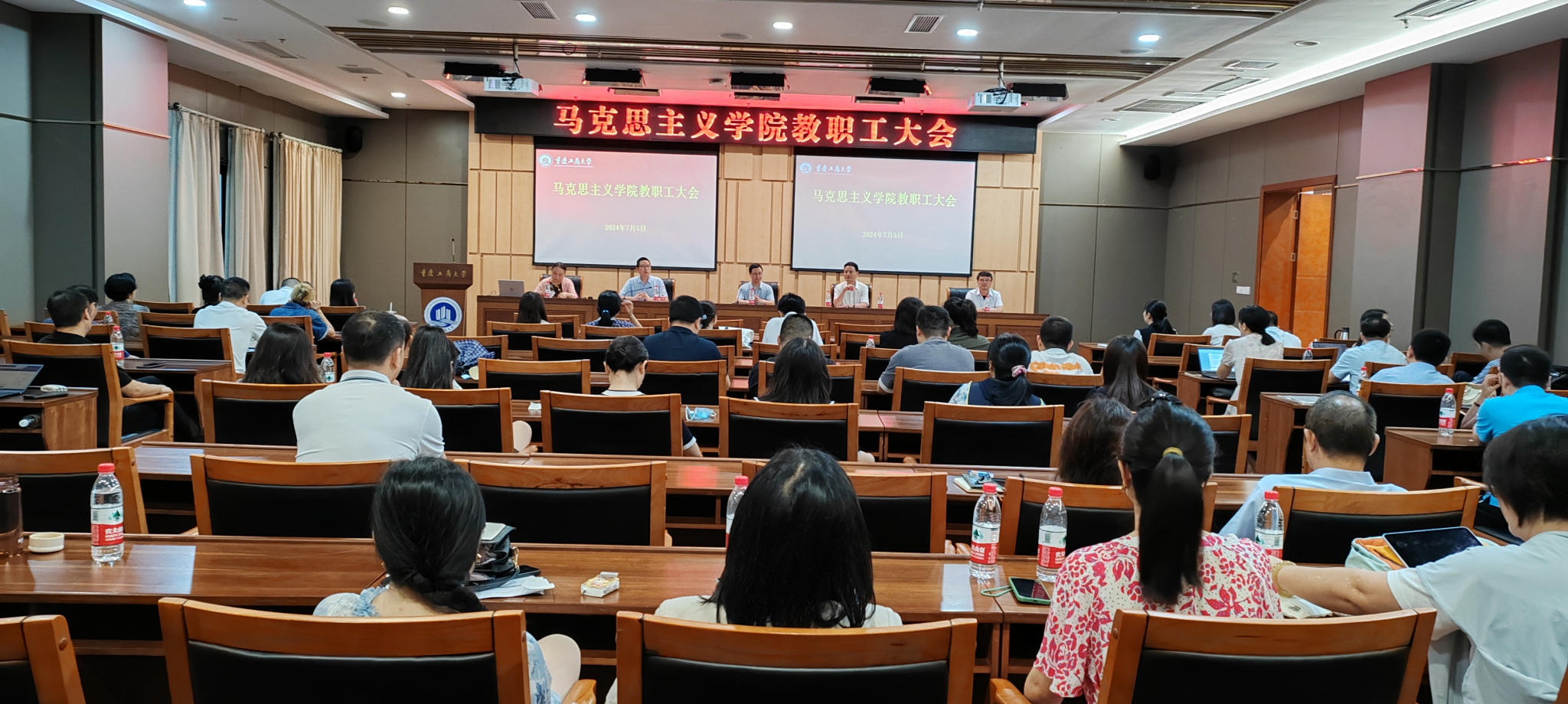 学院院长刘富胜回顾了来校工作的经历、取得的成绩,他非常感谢全体教师给予他的关爱和帮助。他表述beat365亚洲版官网是大家共同的家园,学院拥有三大优势:一是基础好;二是教师团队老中青结合,结构优良;三是有一支靠得住的、值得信任的、团结的行政队伍。他指出,学院面临三大挑战:一是科研的挑战,希望各位教师各显神通,积极撰写、刊发高质量学术论文;二是经费的挑战,希望各位教师要习惯过紧日子,要节源节流;三是人才、课程、成果获奖等高显示度成果的挑战,希望各位教师站稳讲台,提升教学质量,做合格的思政课教师。他分析了今年学院需要完成的三大任务:一是本科教育审核评估,各教研部要反复打磨课程,做好标准化课堂建设,进一步凸显学院思政课特色;二是学科建设,需要大家攻坚克难,携手奋进;三是举办重庆市马克思主义研究生论坛。他就近期要完成的工作作了部署,要求教师要认真做好期末试卷、阅卷等期末收尾工作,积极参加暑期思政研修工作,提前谋划好党的二十届三中全会的研究和阐释工作。