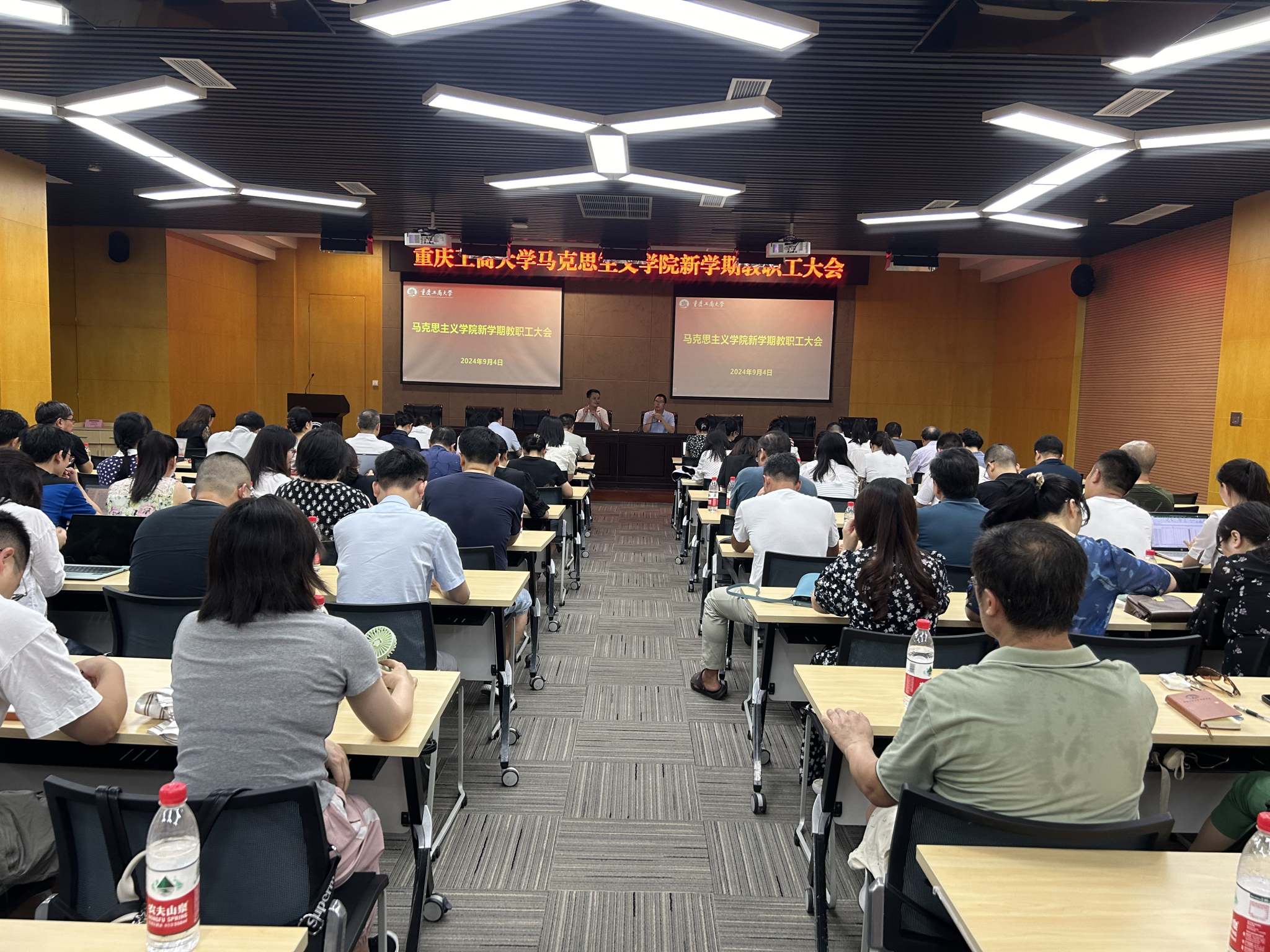 9月4日上午,马克思主义新学期教职工大会在新图书馆多媒体会议室召开,学院领导、全体教职员工参加了会议,会议由学院党委书记宋明江主持。