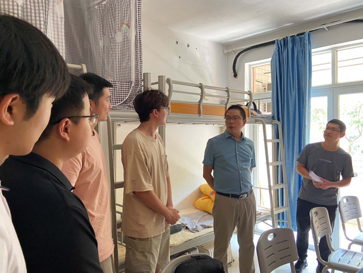 为更好了解新生的思想状况与生活情况,传递学院深切关怀,帮助新生适应学校生活,下午3时许,学院院长刘富胜、学工办主任周琴、辅导员敬德走访beat365新生宿舍。