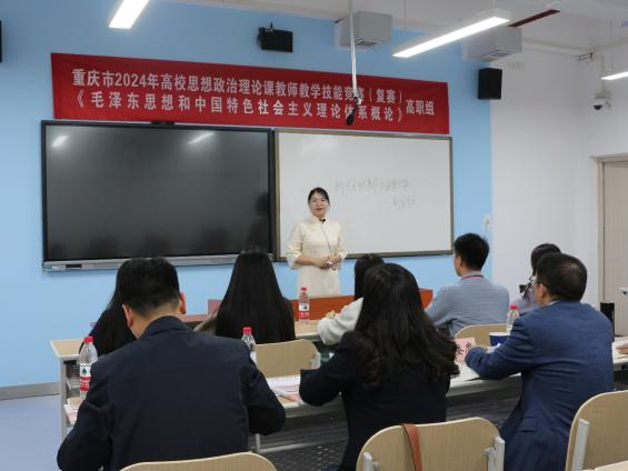 10月13日上午,由重庆市委教育工委、市委宣传部、共青团市委主办,市高校思想政治理论课教学指导委员会“毛泽东思想和中国特色社会主义理论体系概论”课分教学指导委员会、beat365亚洲版官网承办的重庆市2024年高校思想政治理论课教师教学技能竞赛《毛泽东思想和中国特色社会主义理论体系概论》复赛在我校涵智楼顺利举行。来自重庆市24所本科院校、30所高职院校的54名选手参加了本次比赛。
