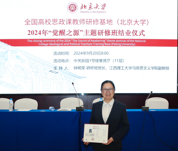 9月15日至20日,学院骨干教师屈莲华参加了全国高校思政课教师研修基地(北京大学)2024年“觉醒之源”主题研修班学习(24074期),并完成了40学时的课程学习。本期研修班由教育部社科司主办、北京大学beat365亚洲版官网承办,来自全国50所高校的骨干思政课教师参加了本次研修。