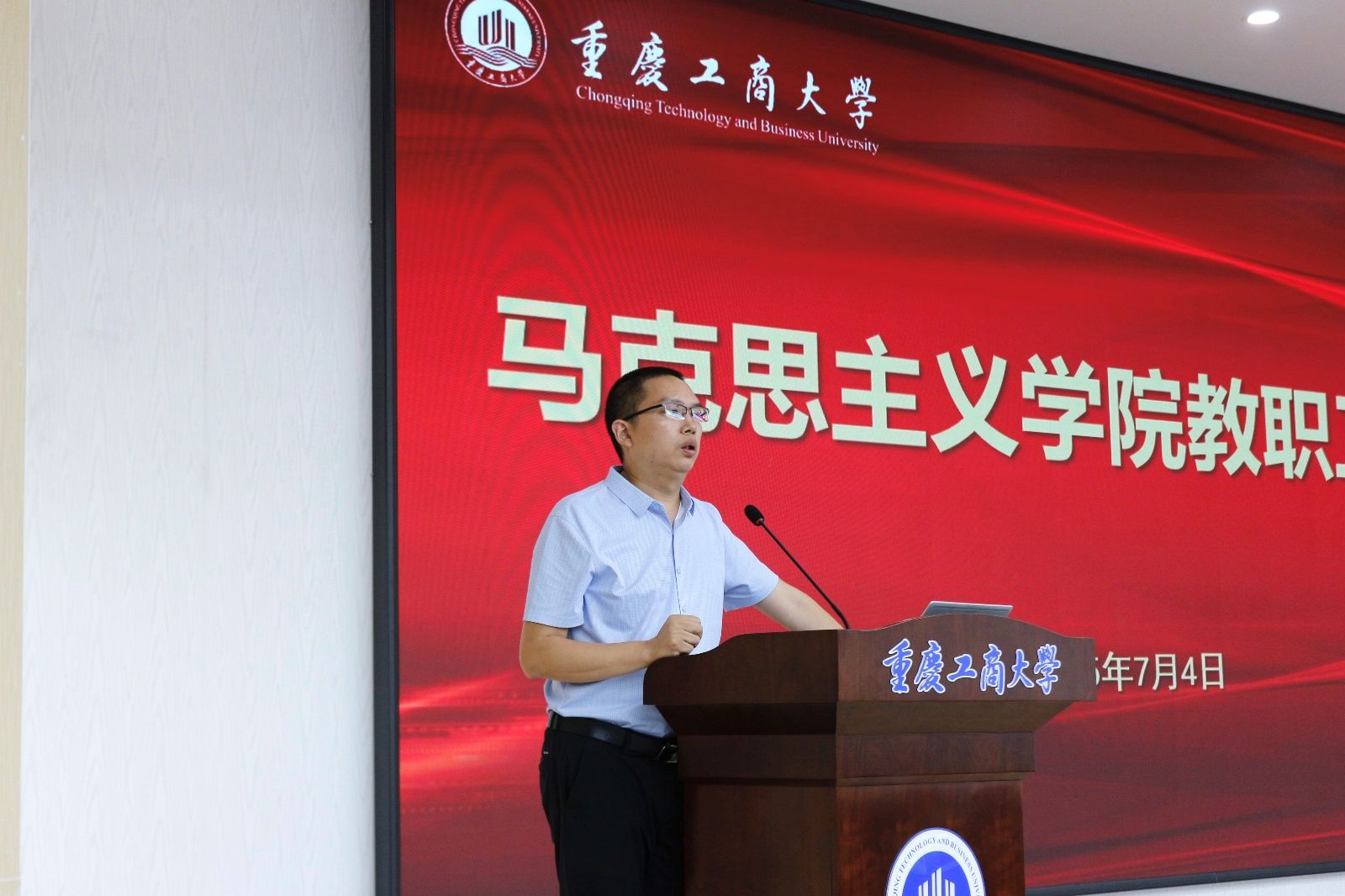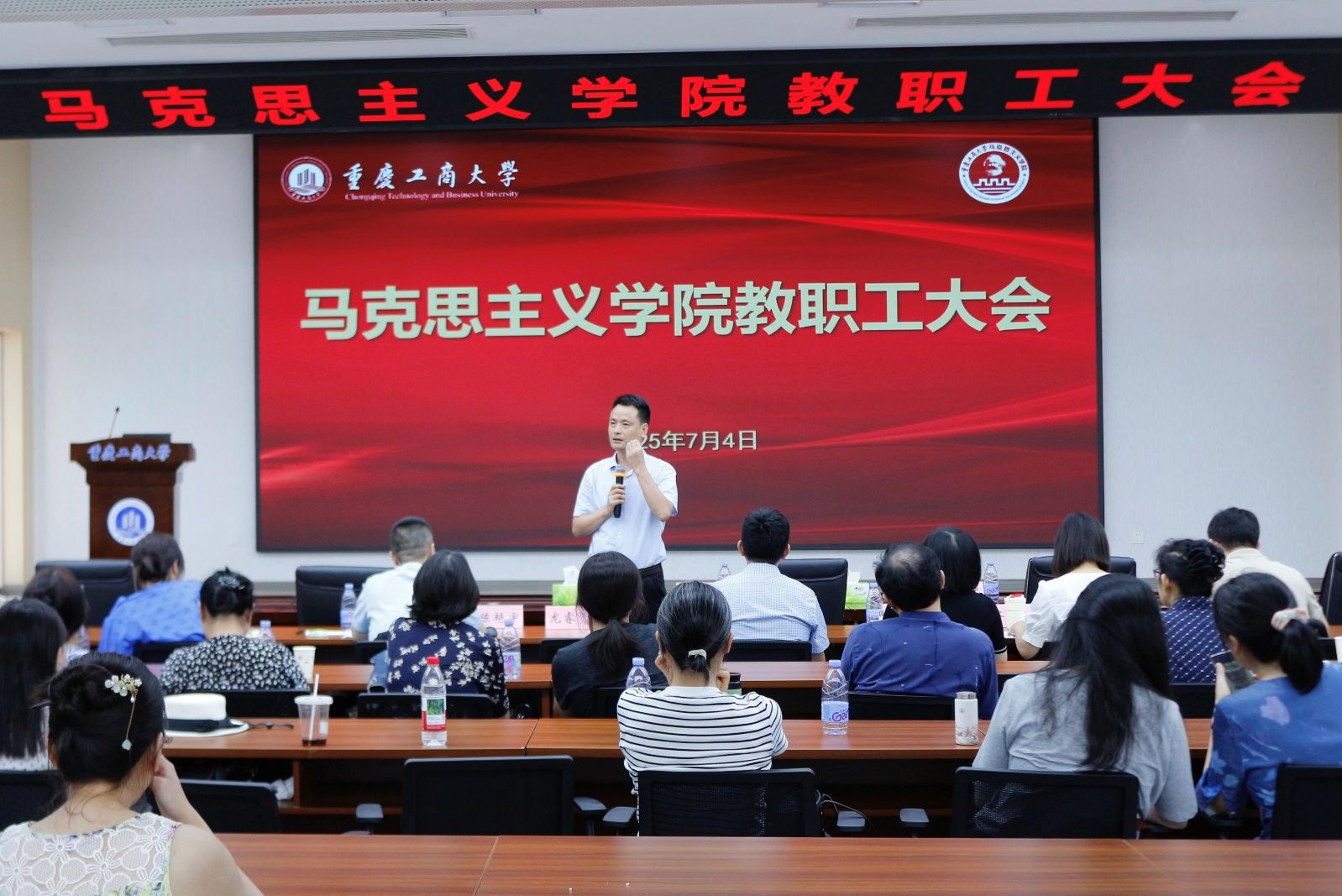 学院党委副书记、院长刘富胜对本学期工作进行了总结,并对期末工作进行安排部署。他充分肯定了本学期教学工作的规范有序及教师备课的显著进步,通报了学院在学生培养上取得的三大显著成绩:硕士论文盲审全数高质量通过、就业工作成效突出、7名学生成功考取博士。同时,他指出当前存在教学特色不鲜明、高水平成果少、学院影响力不足等问题,要求全院紧抓“学科建设年”机遇,系统谋划发展,聚焦学校办学特色,着力打造马院自身特色。他强调,全体教职工要坚守岗位,高效落实期末各项工作。要充分利用暑假时间,弥补学科建设短板,积极对外交流,重点提升科研水平与学生实践能力培养。