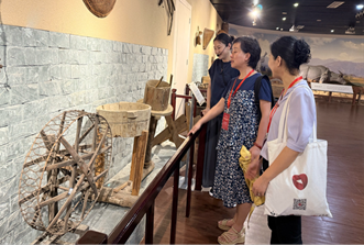 居民厅以实物展陈与场景复原相结合的方式,展示了独具特色的少数民族传统民居风貌。该展厅系统陈列了明清至近代各民族生产生活用具,生动展现了山地民族的生存智慧。在农业生产展区,师生们重点观摩了清代铁制犁铧、木质水车等传统农具,这些因地制宜发明的耕作工具,体现了少数民族适应山地环境的创造力。特别是展出的“脚碓”“手磨”等粮食加工工具,让同学们直观感受到“粒粒皆辛苦”的劳动价值。生活用具展区陈列着各式竹编器具、陶制炊具等日常用品。带队教师现场指出:“这些看似简单的生活用具,蕴含着‘物尽其用’的生态理念。比如这个可拆卸的竹编背篓,既轻便又实用,是山地运输的智慧结晶。”火塘、堂屋等生活场景的还原,让同学们直观体会到少数民族适应自然、和谐共生的生存哲学。