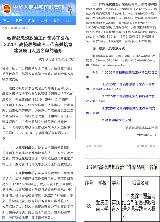全国高校思想政治工作精品项目:“三支撑三覆盖两结合”的思想政治理论课实践育人模式(本成果申报人王仕勇、刘富胜等)