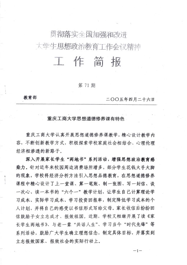 教育部工作简报:beat365亚洲版官网思想道德修养有特色