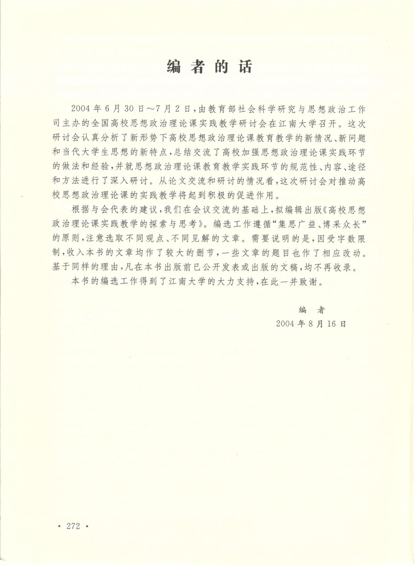 何勇平2004年参加“教育部社科司主办的高校思想政治理论课实践教学研讨会”做主题发言,发言稿收录在《高校思想政治理论课实践教学的探索与思考》,并在《江南大学学报》发表