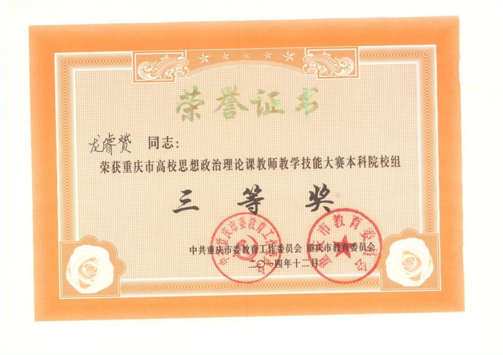 2014年重庆市高校思想政治理论课教师教学技能大赛三等奖