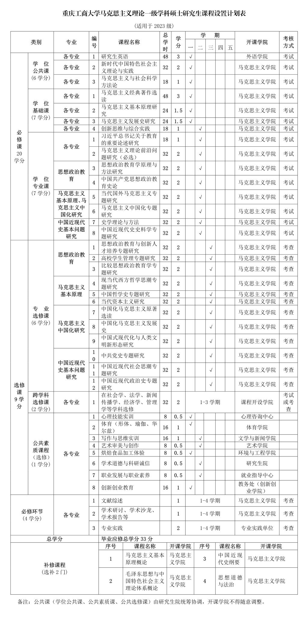 beat365亚洲版官网马克思主义理论一级学科硕士研究生课程设置计划表(适用于2023级)