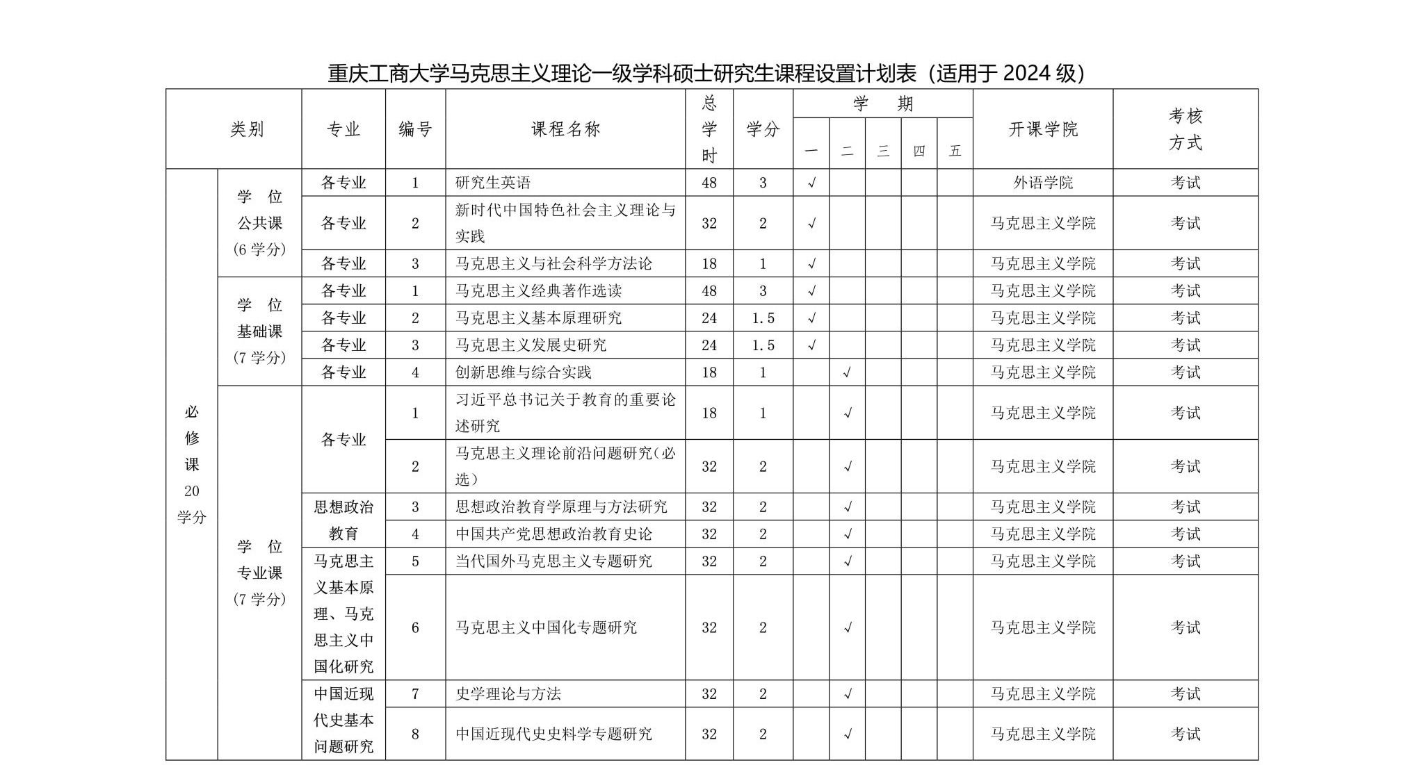 beat365亚洲版官网马克思主义理论一级学科硕士研究生课程设置计划表(适用于2024级)