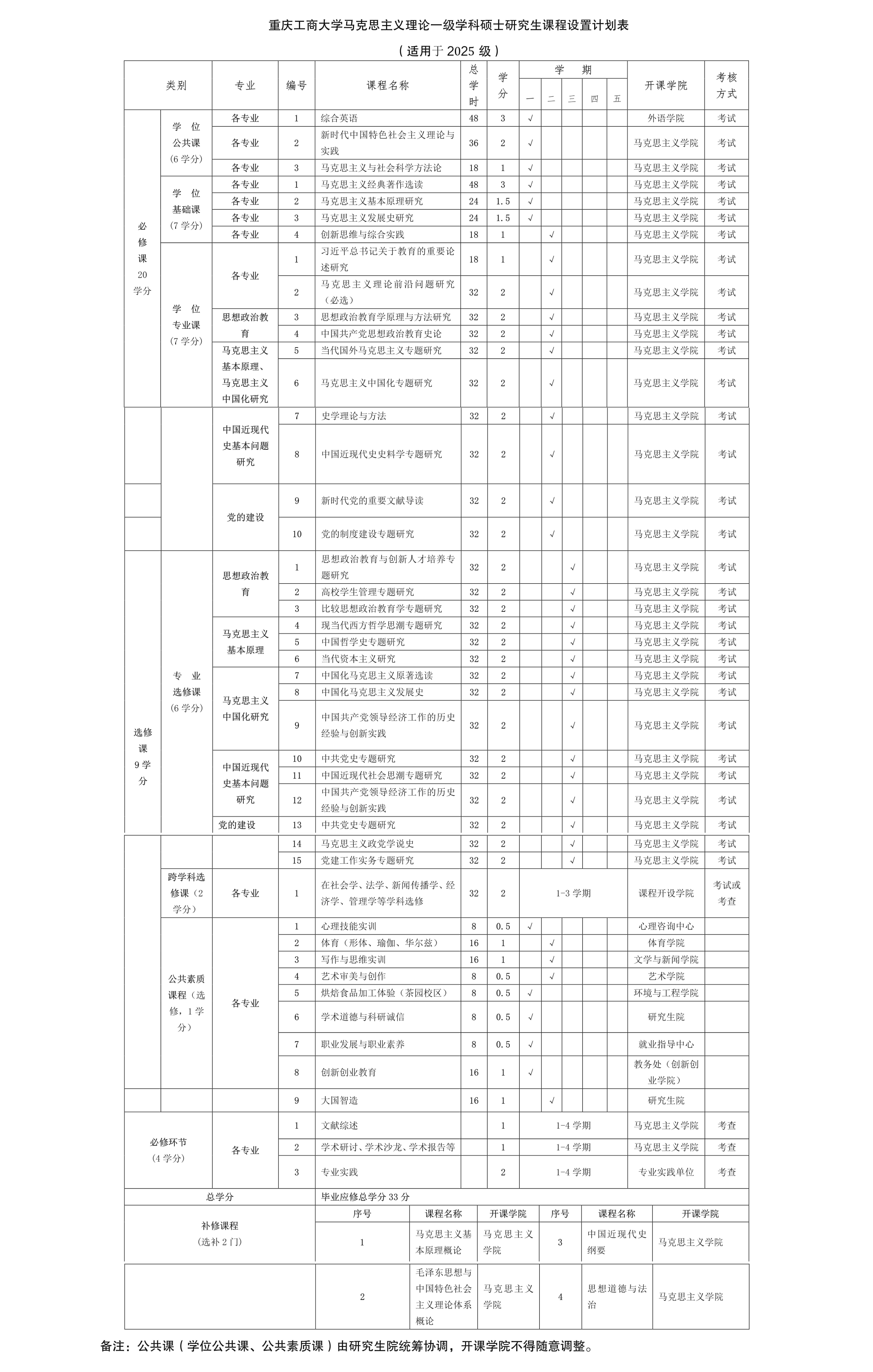beat365亚洲版官网马克思主义理论一级学科硕士研究生课程设置计划表(适用于2025级)
