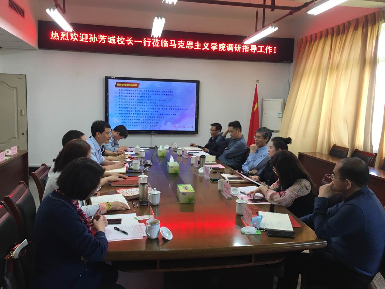 4月13日下午,孙芳城校长一行调研指导beat365亚洲版官网全面从严治党工作,并于91210办公室召开专题工作会议。党政办公室、人事处、教务处、科研处、研究生院等部门负责人、beat365亚洲版官网党政负责人、各教研部负责人参加了会议。会议由beat365亚洲版官网党委书记宋明江主持。