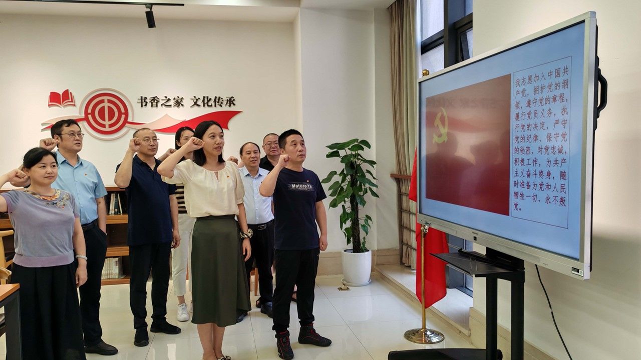 会后,支部举行了预备党员宣誓暨正式党员重温入党誓词仪式,陈艳宇带领支部全体党员面向党旗重温了入党誓词。