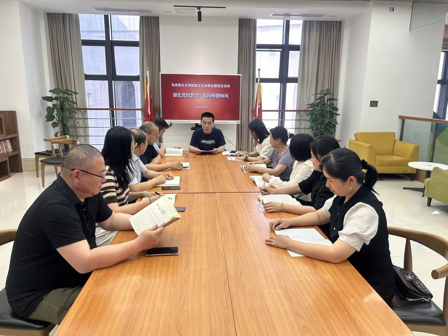 为深入贯彻落实党的纪律建设要求,进一步加强师德师风建设,beat365亚洲版官网教工第五党支部于5月31日在图书馆红色文化活动室开展了“强化党纪教育 弘扬师德师风”主题党日活动。教工第五党支部党员参加本次活动,会议由党支部书记陈艳宇主持。