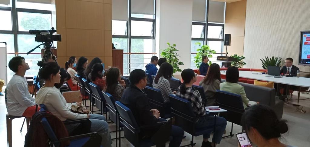 韦晓兰从课程思政和思政课程的关系、融合问题,戴林从图书馆作为大思政育人的载体和功能,刘富胜从思政教育讲道理、育人才等角度进行了点评。在研讨互动环节,听众分别向主讲老师提出了问题并进行交流探讨。