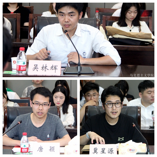 毕业生代表吴林辉同学畅谈了他对研究生阶段的感悟并结合自己学习生活,为母校学科发展建言献策。他十分感激学校为学生提供的良好的学习、生活环境,感谢学院每一位老师在学生求学路上的指导和帮助,感谢老师们的无私奉献和默默付出。他总结了在校求学的丰硕收获的同时也表达了对母校的不舍之情。他表示毕业后他一定会在工作岗位上始终牢记校训,发扬校训精神,以敬业、守信、勤奋的学习、工作状态为学院增光添彩。唐颖代表全体研二同学作了发言,他祝贺全体毕业生顺利通过论文答辩,祝贺学长学姐们考上博士和找到满意工作,并表示全体研二同学一定会向学长学姐们学习,在学业上更更加努力。冀星源代表全体研一同学发言,他感谢学院提供了此次难得的交流学习的机会,感谢学长学姐在学业生活上提供的帮助,祝他们在今后的道路上一帆风顺。