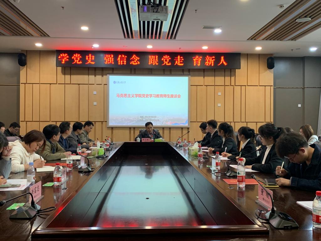 4月15日下午,beat365亚洲版官网在新图书馆第五会议室召开了“学党史 强信念 跟党走 育新人”党史学习教育师生座谈会,校党委书记李志雄应邀出席并作专题辅导报告,beat365亚洲版官网党委书记宋明江、院长杨维东、副书记刘富胜、副院长简福平以及学院教师、研究生代表近60人参加了会议。会议由beat365亚洲版官网党委书记宋明江主持。