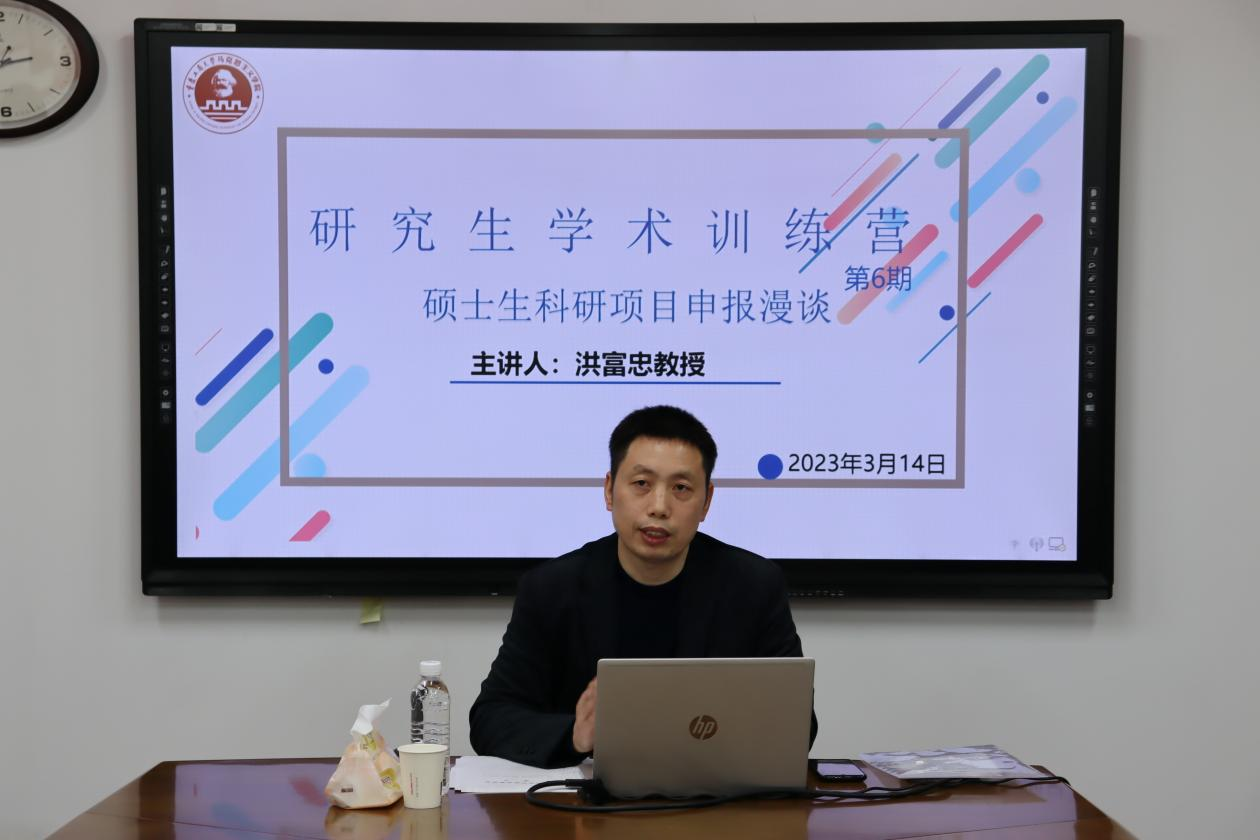 为提升学生科研项目申报能力,营造良好的学术氛围,3月14日下午,学院第六期研究生学术训练营在慧智楼91210举行,本次讲座由洪富忠教授主讲,主题为“硕士生科研项目申报漫谈”,部分研究生听取了讲座。
