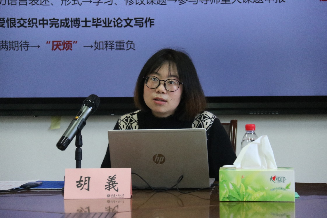 为促进研究生科研能力提升,切实解决研究生在科研实践、课题申报等方面所遇到的问题。3月28日,学院第七期研究生学术训练营在慧智楼91210举行。胡義博士作了题为“科研项目申请书的撰写技巧与规范”的专题讲座,部分研究生听取了讲座。此次讲座由周琴副教授主持。