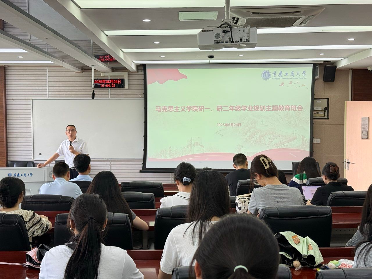 洪富忠则从阅读基础、时间规划、安全意识和社会心态等方面提出了建议。他提到,同学们可以利用暑假广泛阅读专业书籍和经典著作,拓宽自己的知识面,为后续的学习打下坚实的基础。此外,他指出课程作业和社会实践是检验学习成果和提升实践能力的重要途径,同学们要认真对待,确保高质量完成。最后,他强调了树立安全意识的重要性,提醒同学们注意人身安全,调整个人心态,学会控制情绪,保持积极乐观的态度。