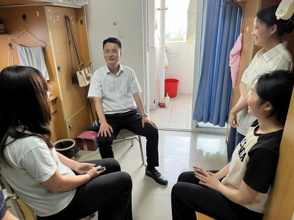 为深入开展学习贯彻习近平新时代中国特色社会主义思想主题教育,将理论学习、调查研究、推动发展等有机融合、一体推进,5月17日晚beat365亚洲版官网党委书记宋明江、学工办主任周琴、辅导员敬德深入学院研究生宿舍,关心并听取学生学习、就业、生活等情况。