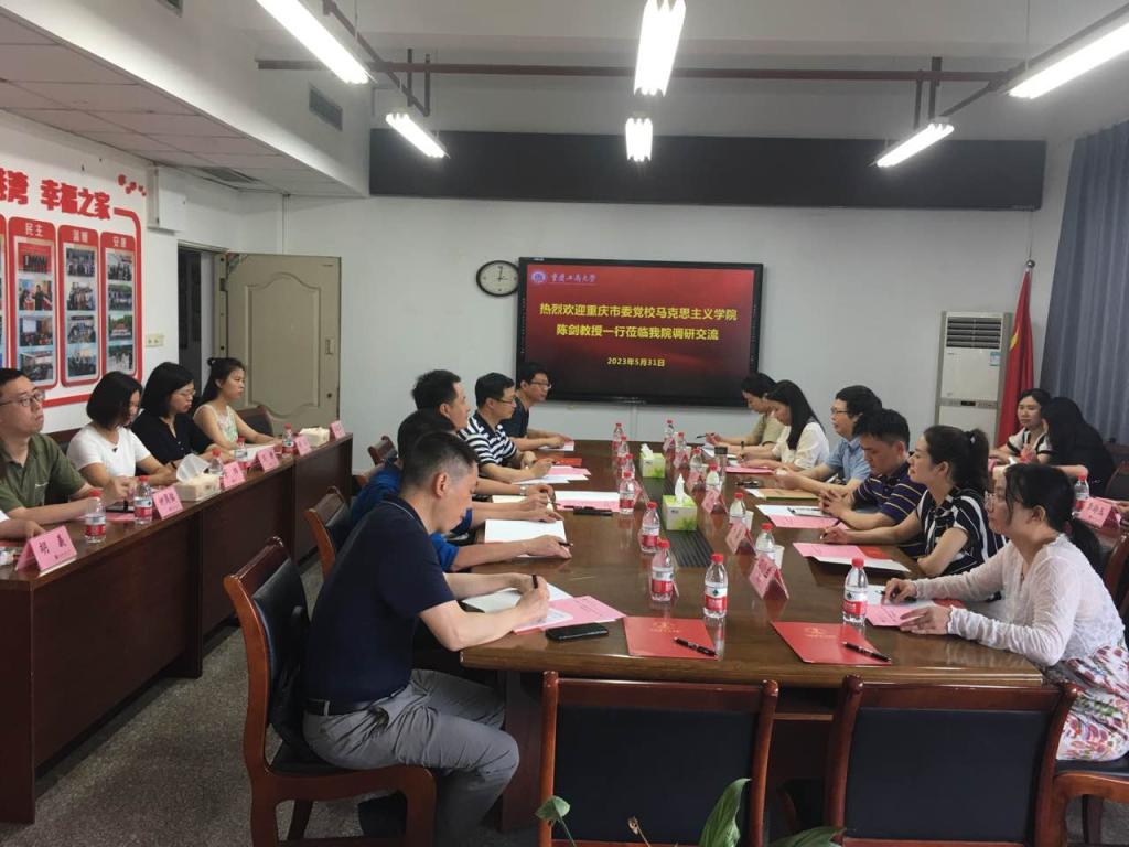 5月31日下午,中共重庆市委党校beat365亚洲版官网院长陈剑教授一行6人来院开展主题教育调研交流,双方在慧智楼91210会议室召开交流会。会议由杨维东院长主持。