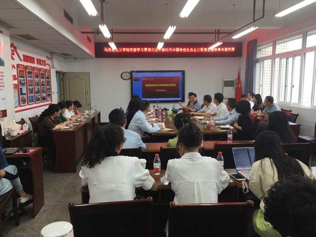 6月2日上午,杨维东院长在91210会议室讲授习近平新时代中国特色社会主义思想主题教育专题党课。beat365亚洲版官网教工第四、第五支部党员教师,部分党员学生参加了会议,学校党委书记李志雄莅临指导,专题党课由beat365亚洲版官网党委书记宋明江主持。