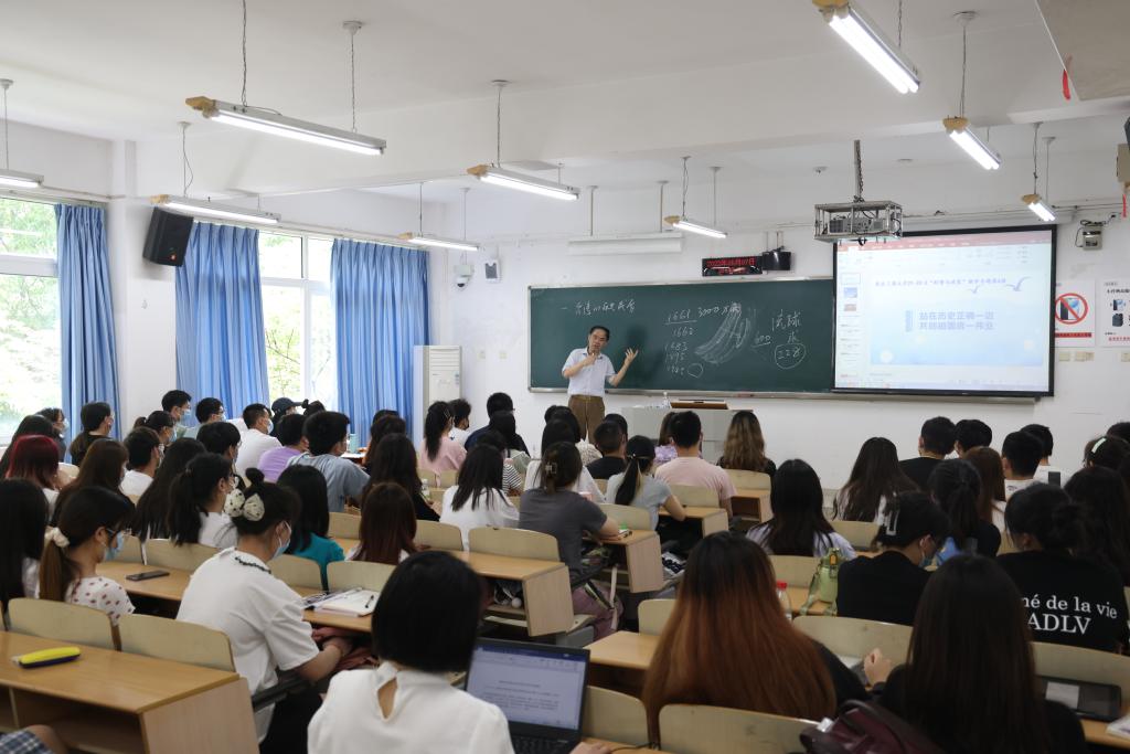 5月7日、9日上午,校党委书记李志雄为公共管理学院2019级土地资源管理二班、2019级数学与统计学院数据统计专业学生讲授《站在历史正确一边 共创祖国统一伟业》的形式与政策课。