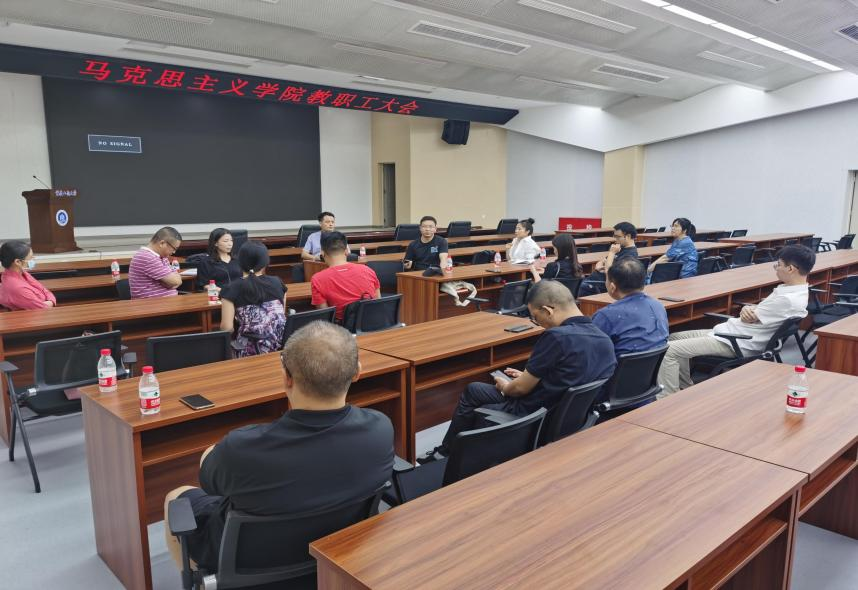 董骏传达了学校和学院对教师授课的基本要求,对本学期思想道德与法治课专题教学实施方案进行了解读,对近期试卷整理、教师教学比赛等事项作说明和部署。