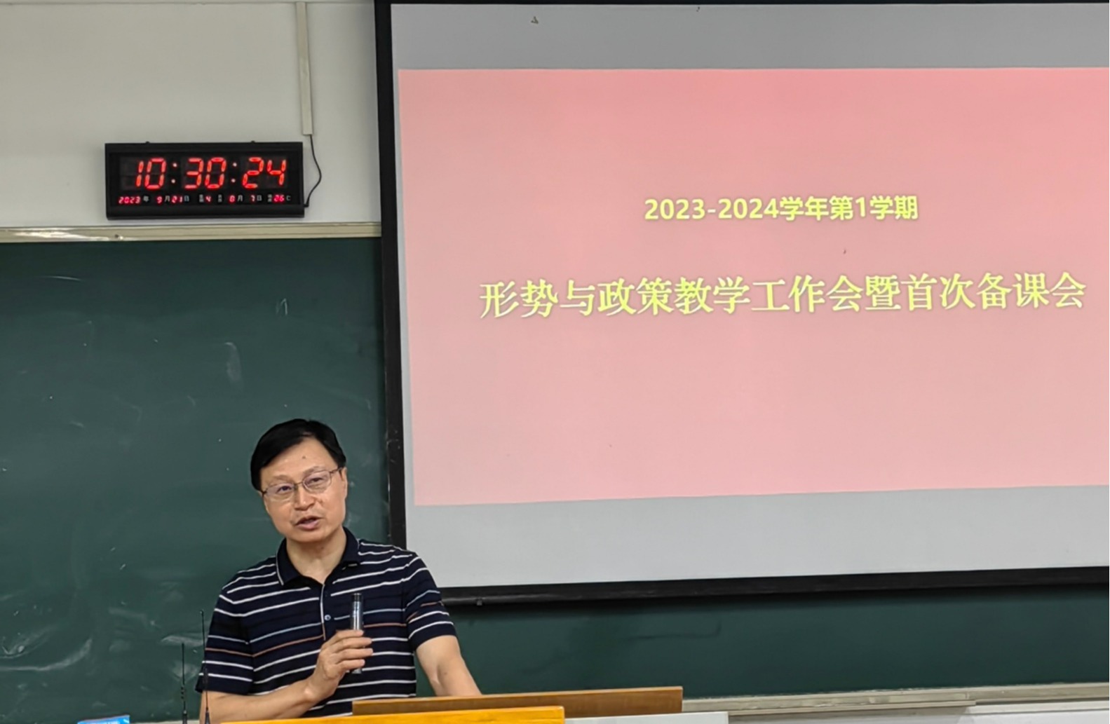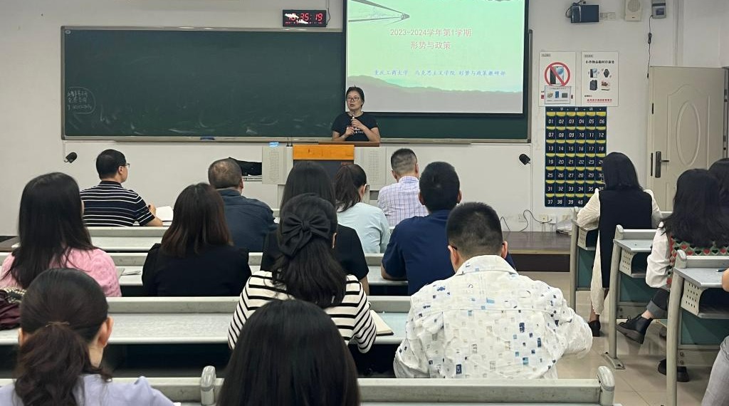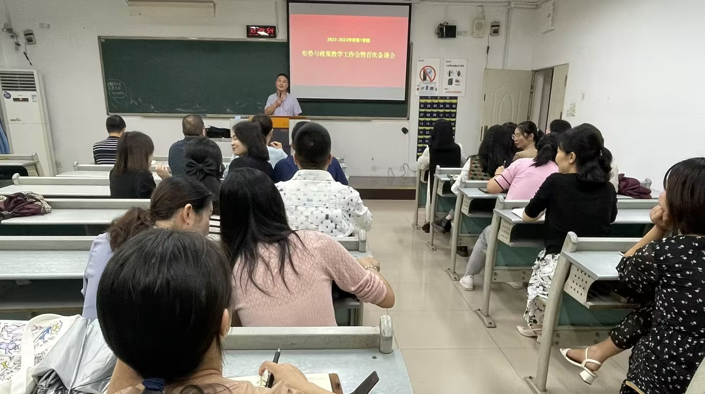2023-2024学年第1学期“形势与政策”教学工作会暨首次备课会于9月21日在九教90221教室举行,我校形势与政策课程专兼职教师近50人参加了本次会议,会议由形势与政策教研部主任陈艳宇老师主持。