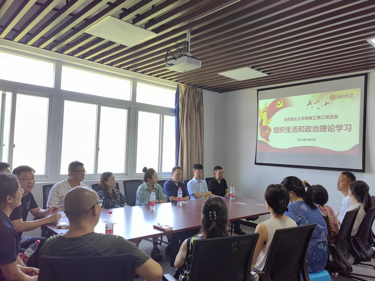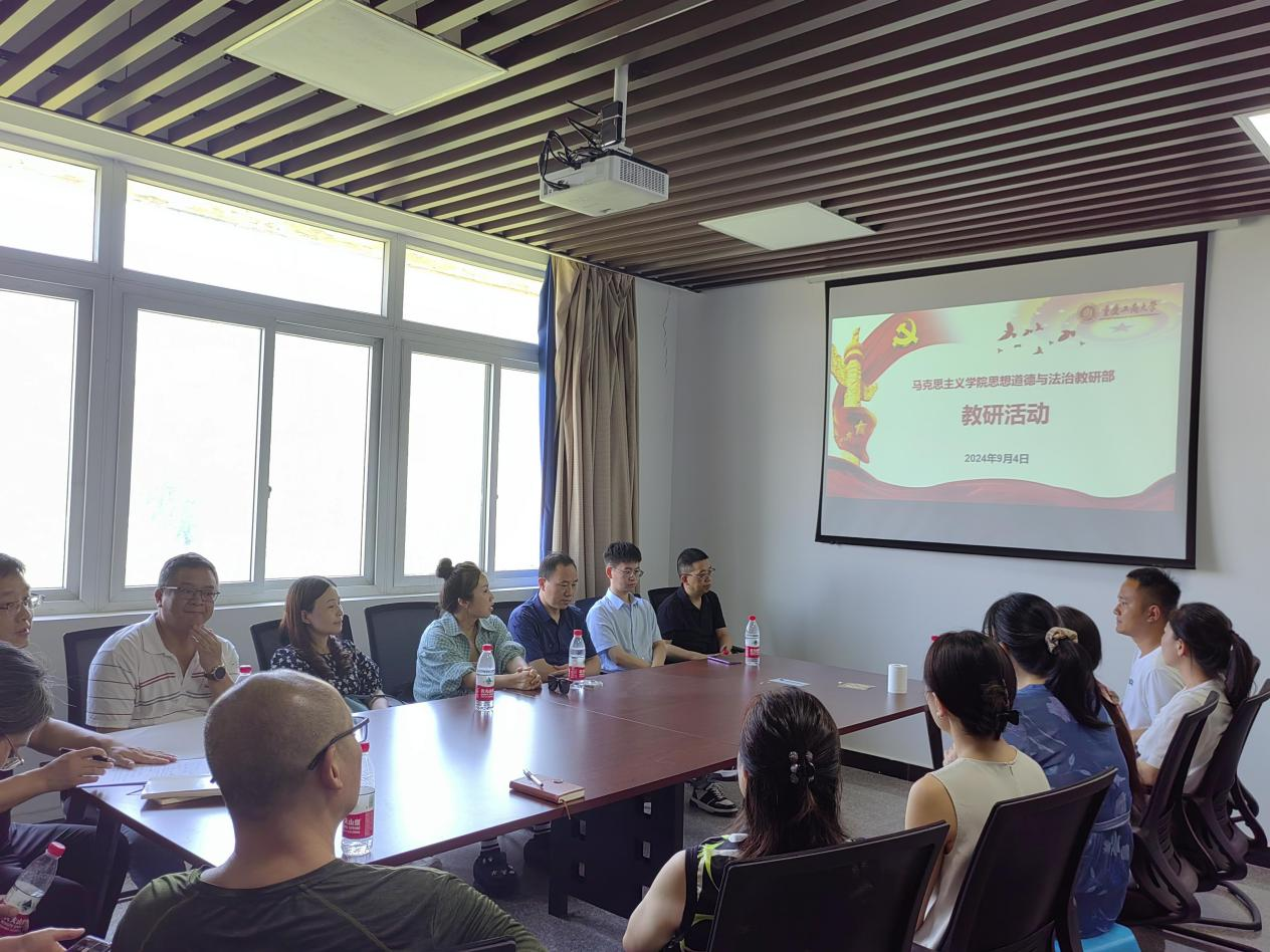 为深入学习贯彻习近平总书记关于学校思政课建设的重要指示精神,推进党的二十届三中全会精神、习近平总书记视察重庆重要讲话重要指示精神以及习近平总书记关于教育的重要论述融入思政课教学,2024年9月4日上午,beat365亚洲版官网思想道德与法治教研部、教工第三支部在90910会议室召开了2024年新学期集体备课会暨政治理论学习会。教研部、支部全体老师参加会议,会议由beat365亚洲版官网教工第三支部书记、教研部主任董骏主持。